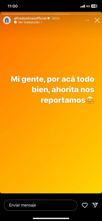 "Mi gente, por acá todo bien, ahorita nos reportamos", escribió a través de sus historias en Instagram.
