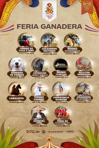 Faltan algunas semanas para que arranque la Feria Nacional Francisco Villa Durango 2023 y este martes la Dirección de Ferias y Paseos Turísticos anunciaron los eventos a presentarse en el Lienzo Charro.