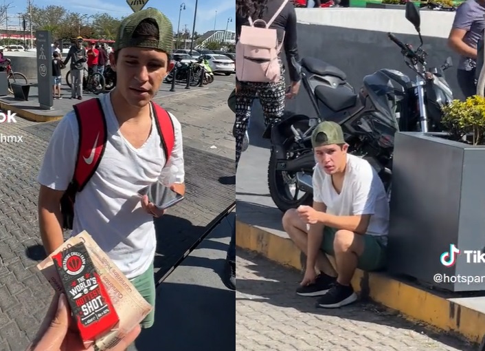 Roberto Gonzáles, mejor conocido como HotSpanish publicó un video en sus redes sociales en donde por dos mil pesos un joven debía darle un shot a "la bebida más picante del mundo", no obstante, todo se salió de control.