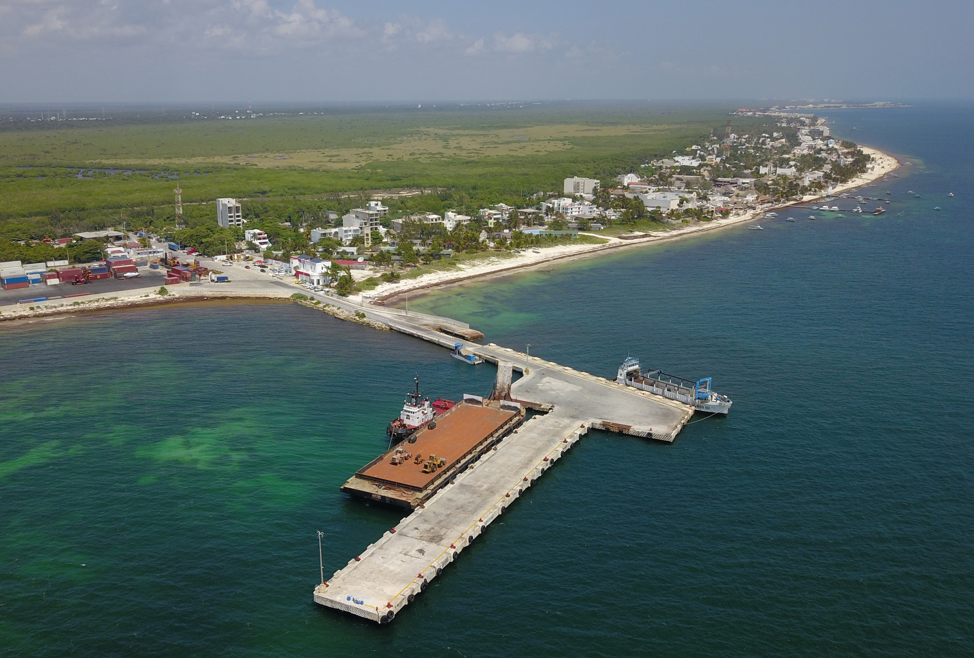 El buque "Melody", que transporta la carga, está fondeado frente al muelle fiscal de Puerto Morelos, entre la isla de Cozumel y el Área Natural Protegida Arrecifes de Puerto Morelos.