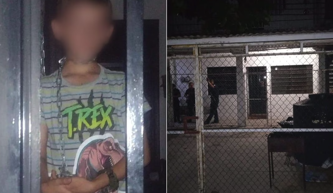 La denuncia llegó a las autoridades cerca de las siete de la tarde, cuando los vecinos observaron a un grupo de niños parados frente a la ventana del pequeño departamento. Allí, constataron la presencia del menor de complexión delgada, con una cadena atada a su cuello.