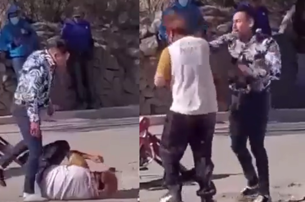 En poco tiempo se difundió otro video que exhibe a quien sería Sergio 'N' amenazando y golpeando a un hombre en el suelo en plena vía pública.