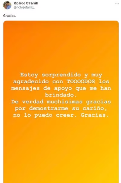 "Estoy sorprendido y muy agradecido con TOOOODOS los mensajes de apoyo que me han brindado. De verdad muchas gracias por demostrarme su cariño, no lo puedo creer. Gracias", se lee en la publicación compartida por el comediante.