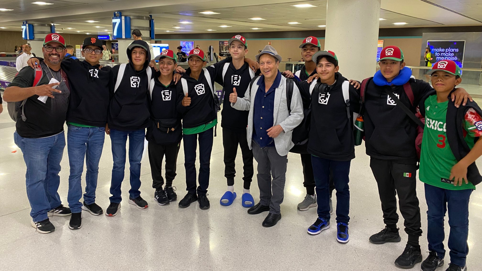 El famoso actor de Hollywood, Rob Schneider, demostró una vez su amor por México. Esta vez, con un gesto de humildad con un grupo de jóvenes beisbolistas de Sonora, al invitarles la cena en el aeropuerto de Los Ángeles en Estados Unidos.