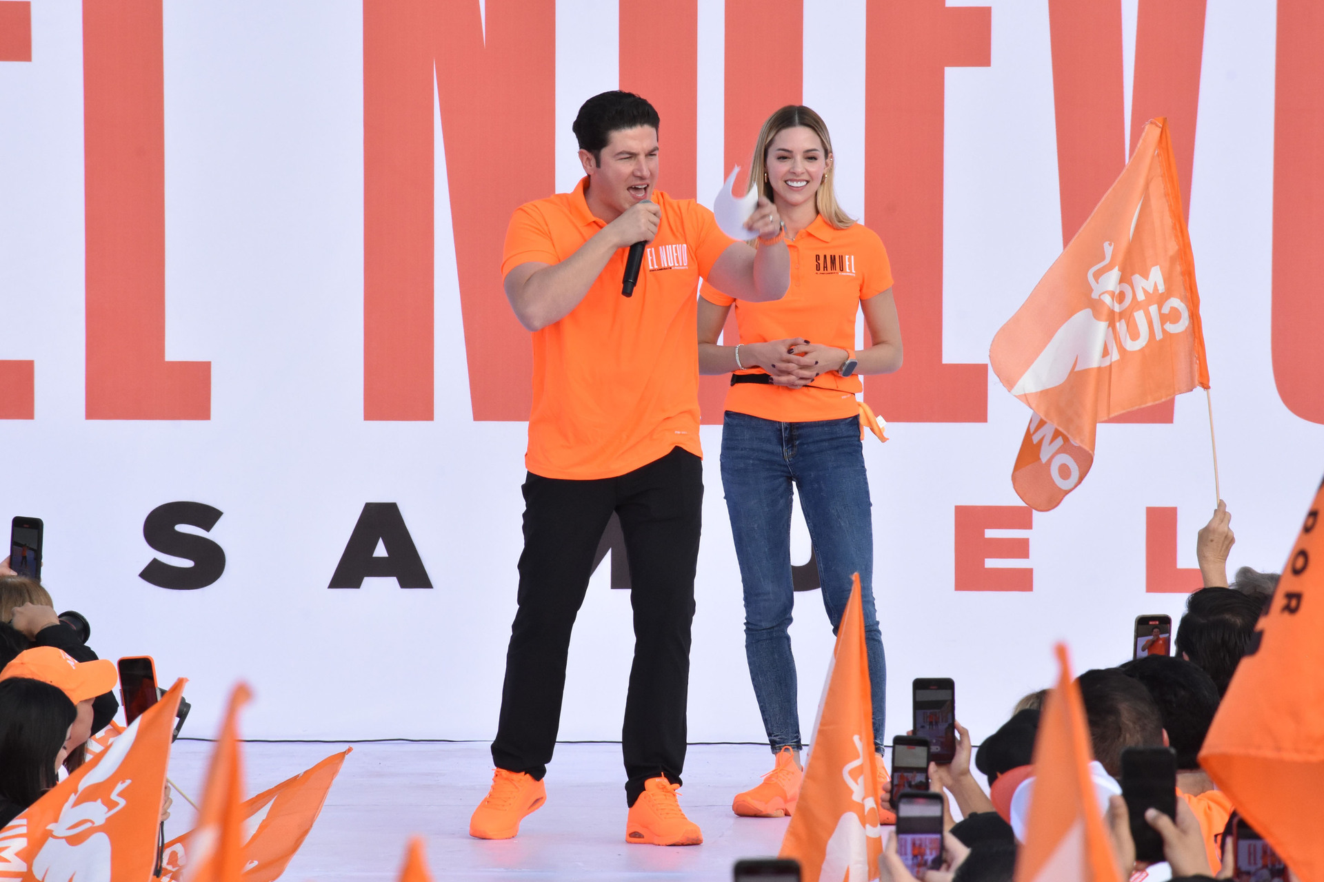 "Hoy empieza la precandidatura, somos formalmente precandidatos de hoy lunes 20 de noviembre al 18 de enero. Van a notar una campaña alegre, naranja, 'fosfo', divertida, juvenil que va a derrotar a la vieja política el 2 de junio", expresó García.