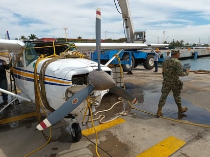 Autoridades portuarias llevaron a cabo los trabajos necesarios para recuperar la avioneta Cessna.