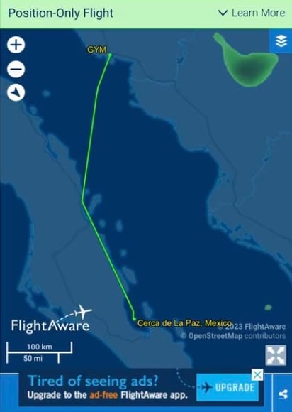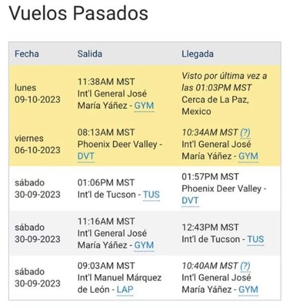 Una avioneta que despegó a las 11.28 horas de este lunes 9 de octubre, del aeropuerto Internacional de Guaymas "General José María Yáñez" hacia La Paz, Baja California Sur, no llegó a su destino.