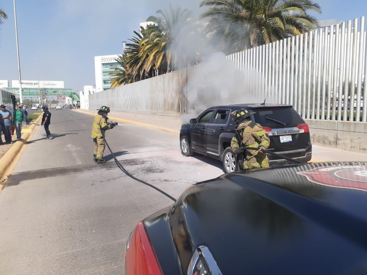 Elementos del escuadrón de bomberos de la Dirección Municipal de Protección Civil recibieron el llamado de auxilio, ya que una camioneta de la marca GMC, línea Terrain estaba en llamas.