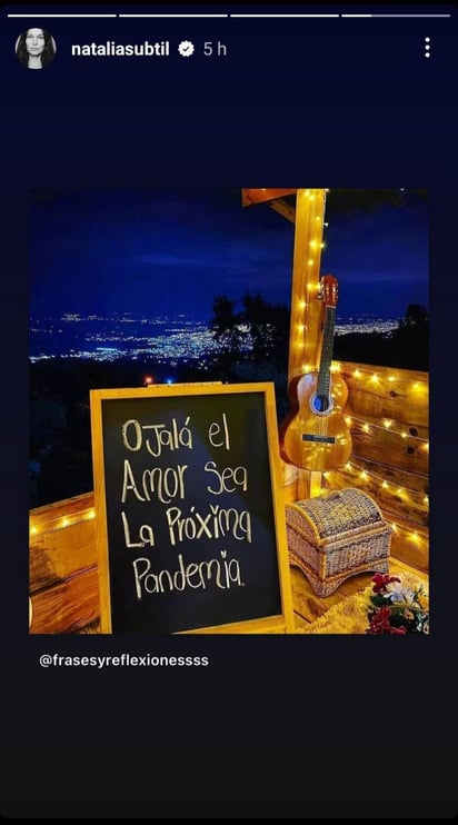 Esta mañana. Natalia en su cuenta de Instagram colgó una foto en la que en un pizarrón se puede leer: "ojalá el amor sea la próxima pandemia".