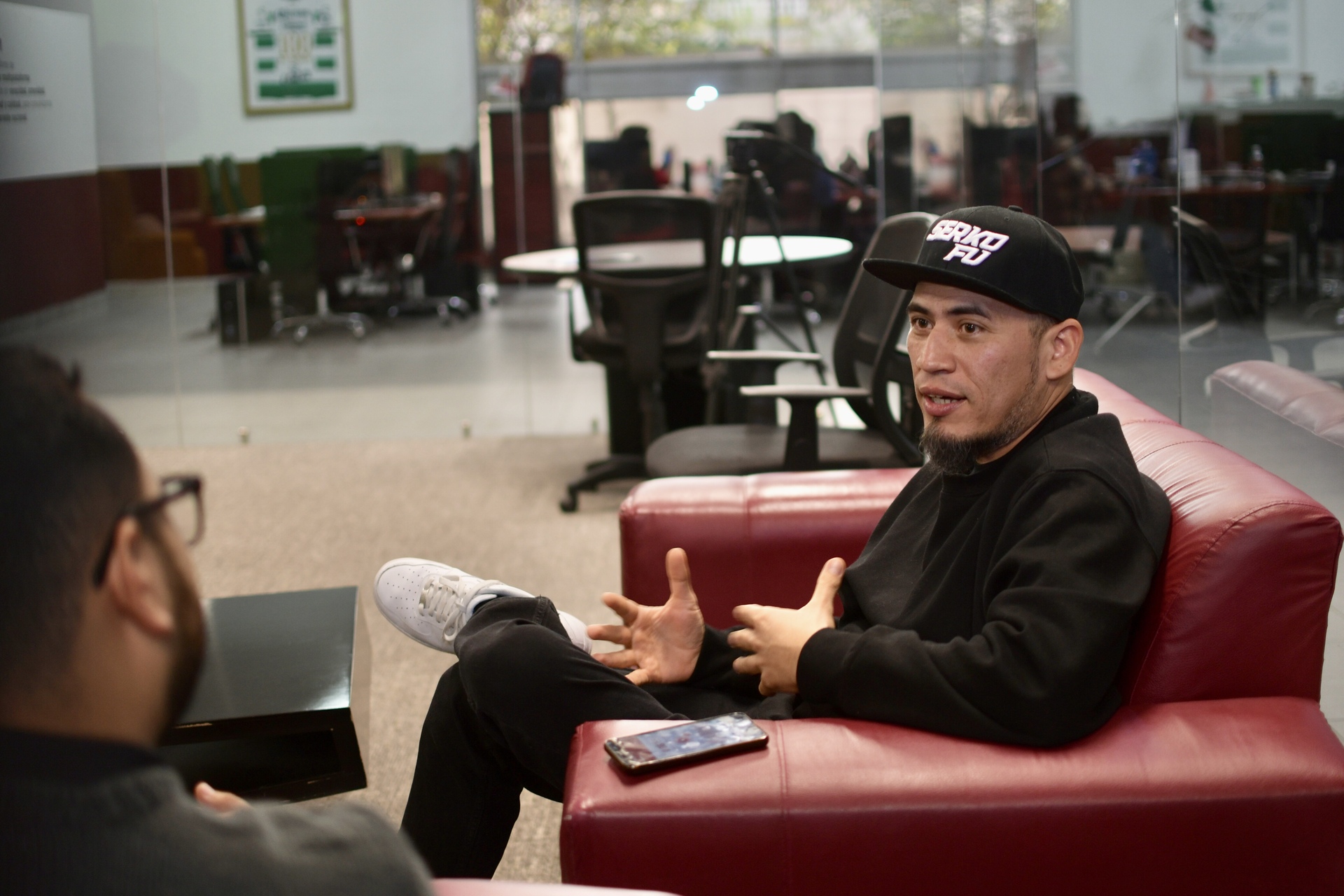 "Red Bull nos empezó a contratar, pero por el rap, porque rapeábamos. Nos empezaron a llamar para eventos, como el del breakdance. Al principio nos invitaban a rapear. Entonces, ya cuando llega la Batalla de los Gallos de Red Bull, ya me tenían ubicado, ya teníamos una relación. Me dijeron: 'Oye, queremos que seas host'. ¡Ah, pues órale!".