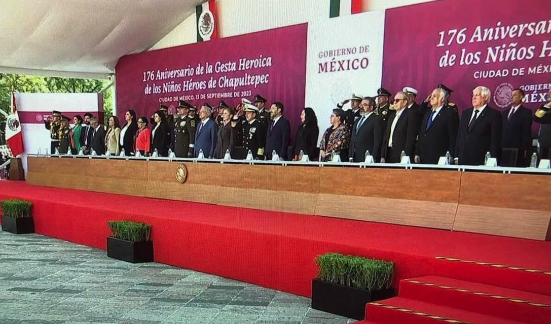 Sin los presidentes del Poder Judicial y del Poder Legislativo, el presidente Andrés Manuel López Obrador encabezó la ceremonia por el 176 Aniversario de la Gesta Heroica de los Niños Héroes de Chapultepec en el Altar a la Patria.