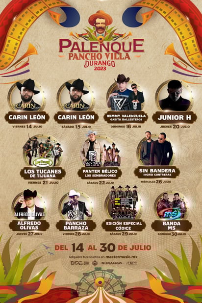 A casi un mes de presentar la cartelera oficial para el Palenque de la Feria Nacional Francisco Villa Durango 2023, este martes se anunció el tan esperando "artista sorpresa", quien llegará el 15 de julio para amenizar los festejos.