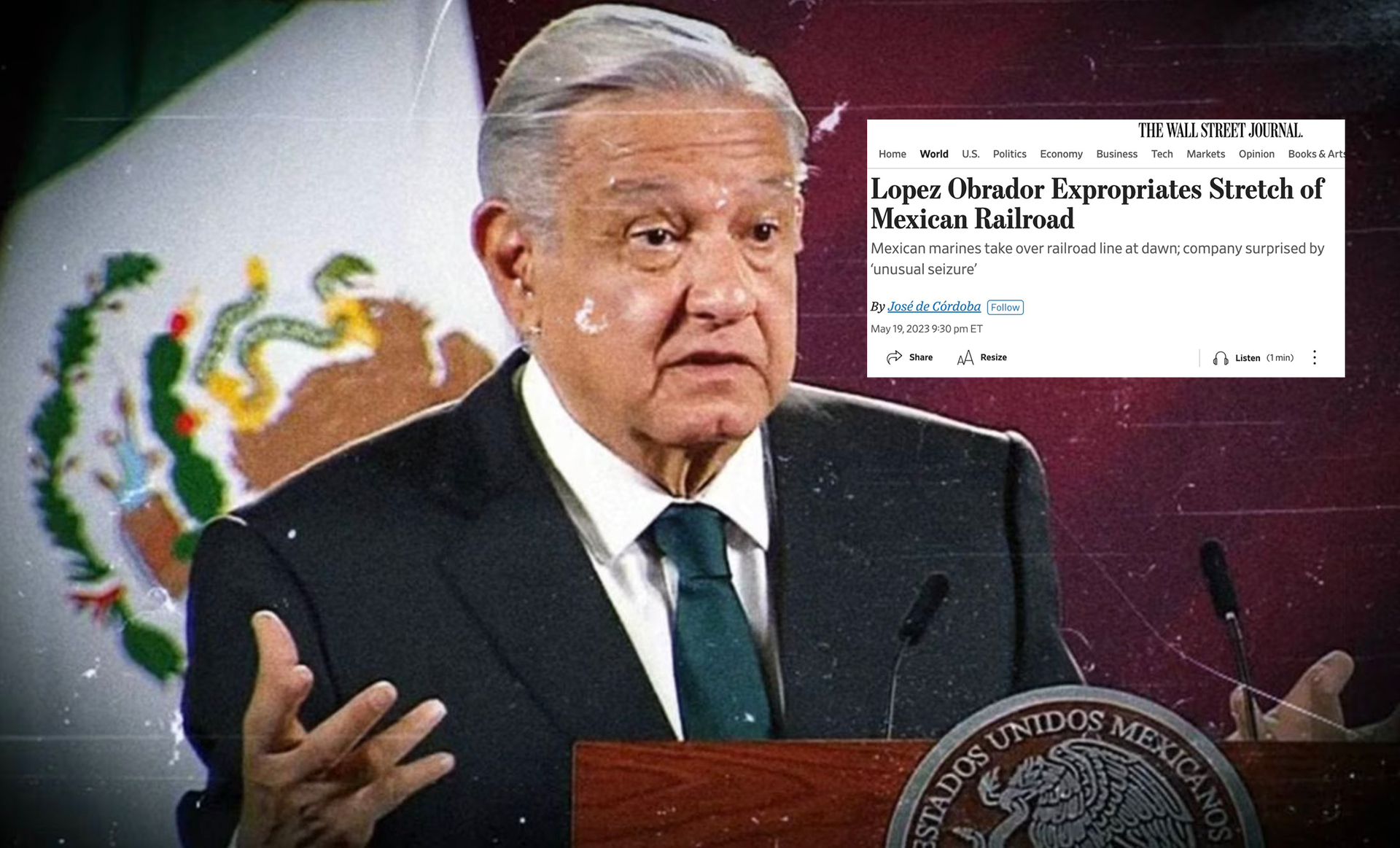 El presidente mexicano, Andrés Manuel López Obrador, fue objeto de un editorial del diario The Wall Street Journal titulado "AMLO dice que lo que es tuyo puede ser suyo en México", en el que agrega que el Mandatario "ignora la ley para expropiar bienes cuando conviene a sus fines políticos".