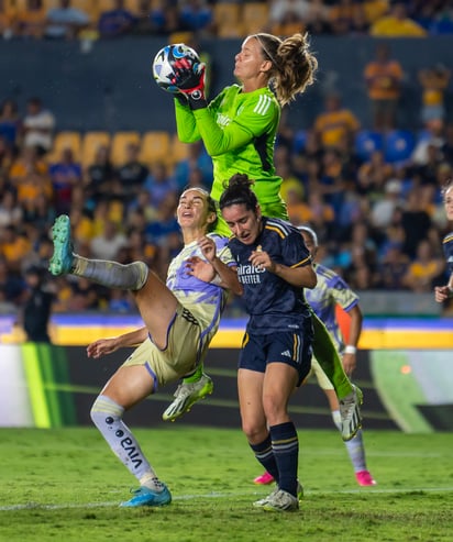 Tigres siguió adelante en busca de goles. En el 75 Maricarmen Reyes remató a puerta, pero Mylene Chavas despejó oportuna y salvó a las merengue.