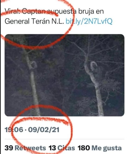 Sin embargo, la foto de un supuesto “aluxe” que fue visto hace tres días y que difundió el presidente López Obrador no es reciente, puesto que se trata de una imagen que fue divulgada en redes sociales desde febrero de 2021 y en donde se aseguraba que era una “bruja”.
