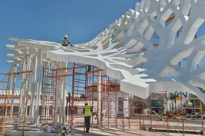 La estructura principal lleva un trabajo especial, con estructuras con forma de robles como símbolo de fortaleza del espíritu de los duranguenses, se está reparando y pintando por completo para poder devolverle su imagen, una imagen limpia y segura.