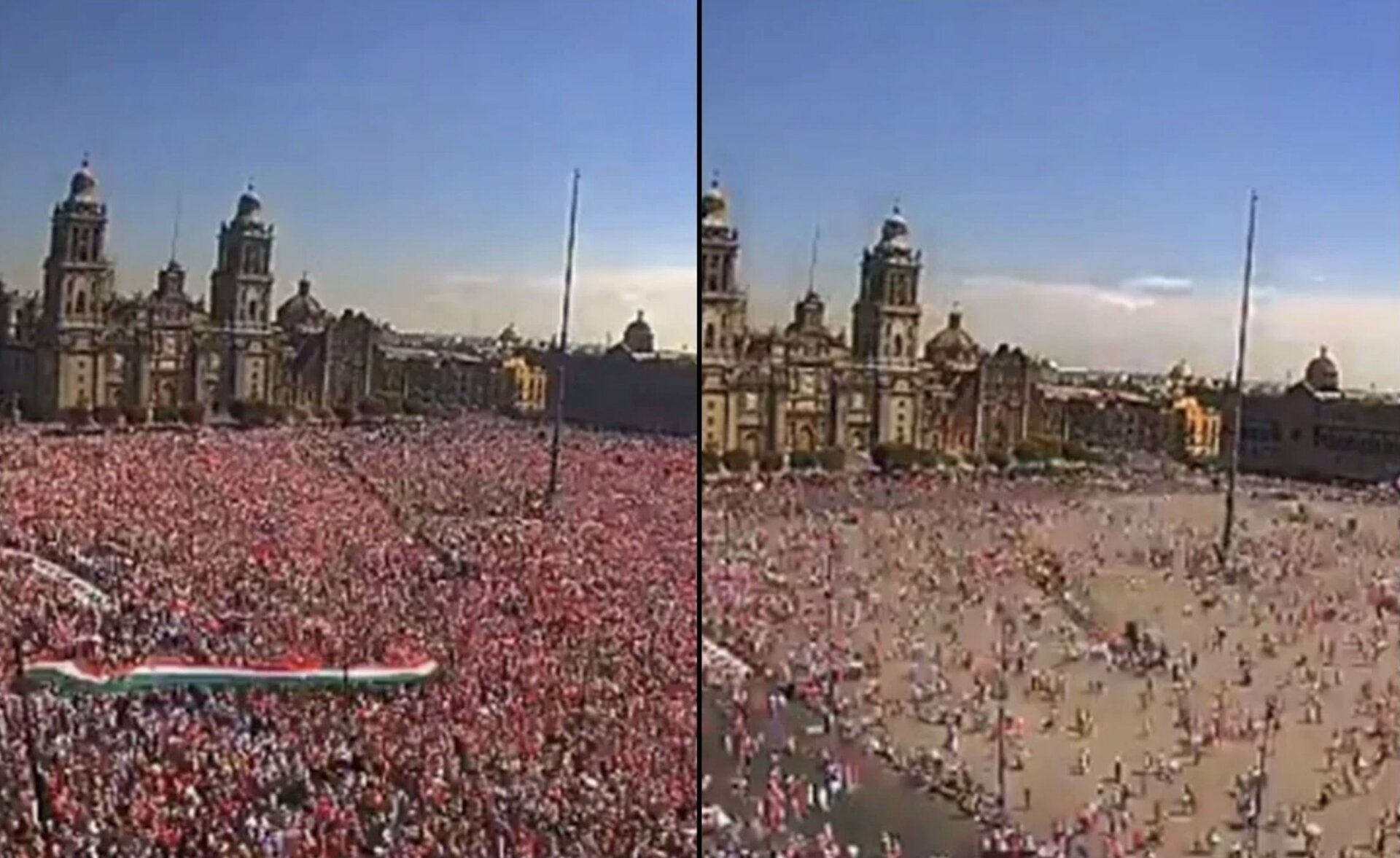 Lo anterior fue captado por las cámaras de Webcams de México, quien a través de un video en cámara rápida mostró como se llenó y se vacío el Zócalo capitalino. Es un timelapse, en realidad.