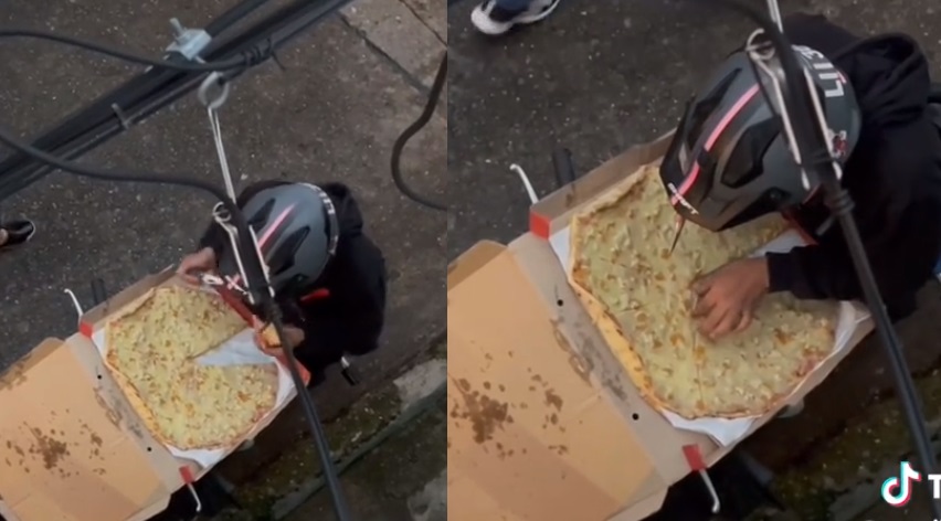 Pero un repartidor de pizza fue viral en TikTok luego de que fuera captado por un usuario mientras abre la caja. El trabajador sacó una porción de la pizza y para que no se notara, decidió acomodar el resto de las porciones para que pareciera que no había sucedido nada. Sin embargo, no advirtió que alguien estaba documentando el momento en el que este comportamiento generaba rechazo.