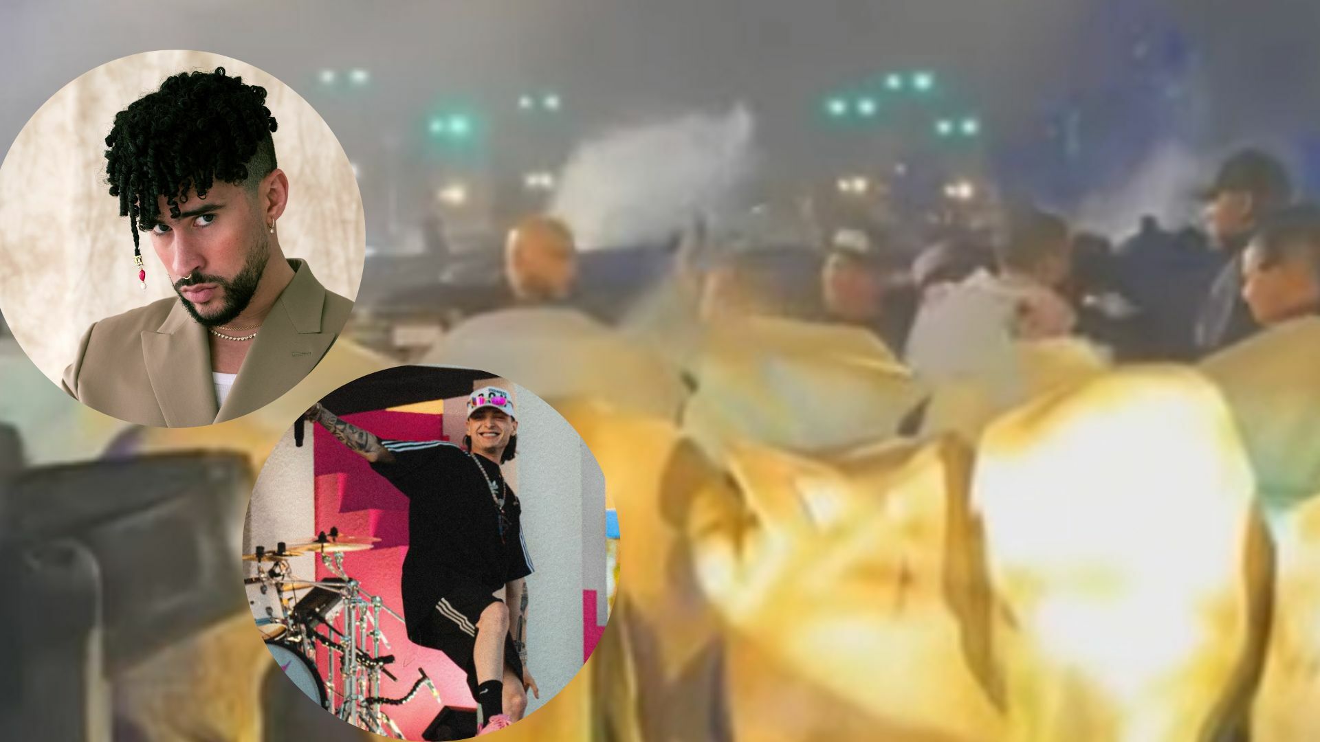 Al finalizar el primer día del festival, los asistentes documentaron el momento en que Bad Bunny y Peso Pluma coincidieron abajo del escenario.