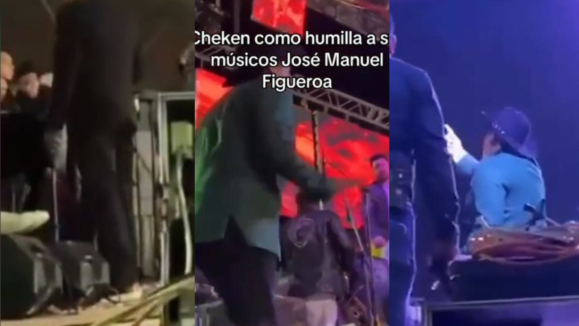 La actitud de José Manuel Figueroa hacia sus músicos ha alzado las críticas en las redes sociales después de que se difundiera un video en el que incluso se observa que les lanza un objeto en el rostro.