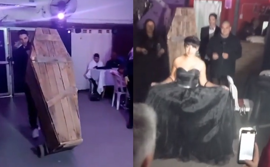 Por medio de la plataforma china se viralizó el momento en que la quinceañera entró a la celebración de una manera inusual. Y es que en medio del salón de fiesta se encontraba un ataúd de madera.