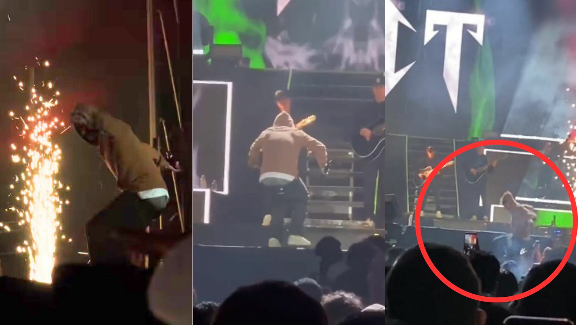 “Nunca me había pasado eso OMG”, expresó después de ser apoyado por sus guardaespaldas para continuar con el show, mientras que los fanáticos coreaban su nombre para animarlo después de “azotar”.