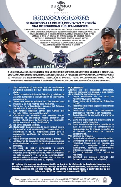 Abren convocatoria 2024 para Policía Municipal de Durango