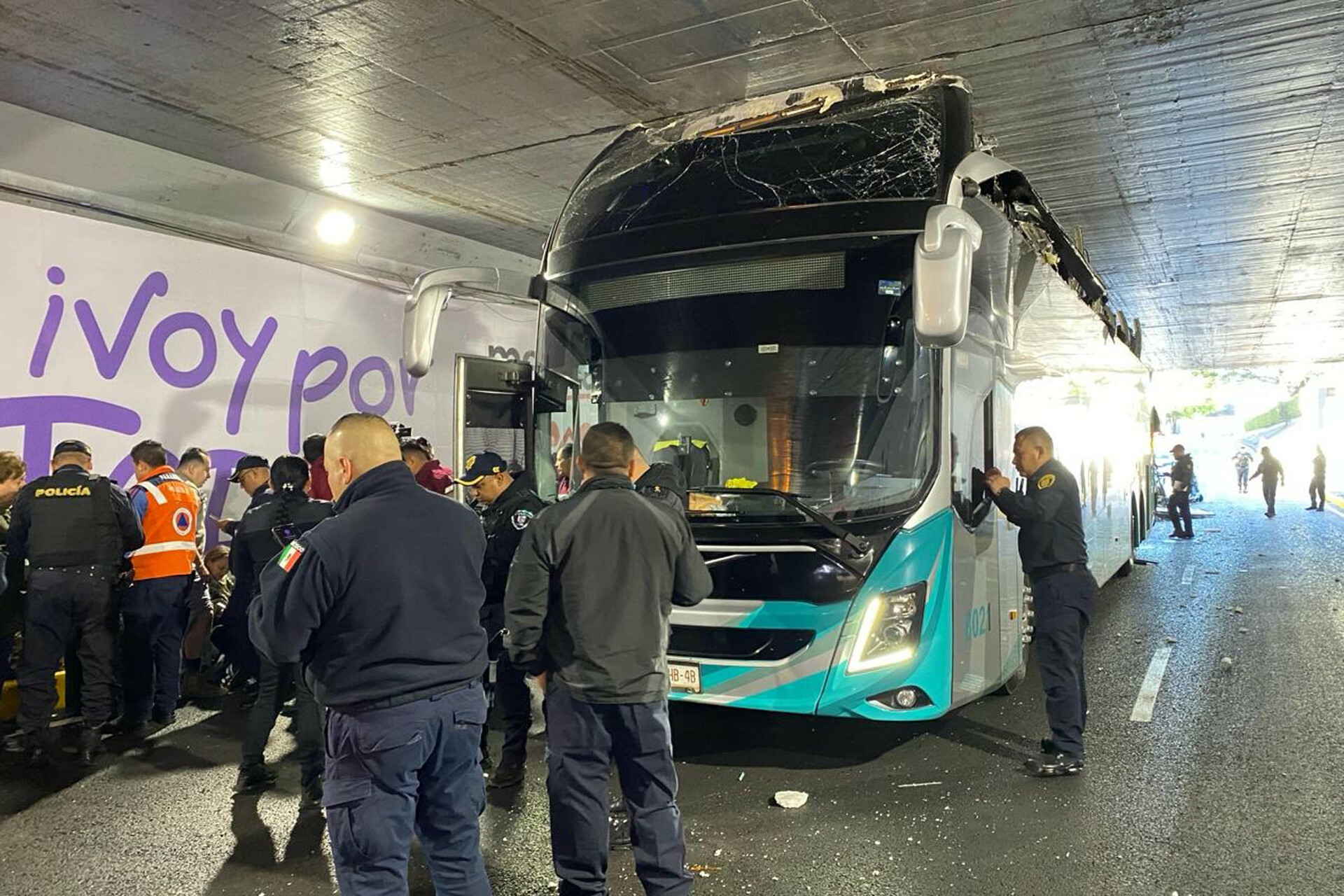 El autobús procedente de Toluca, Estado de México, se dirigía al estado de Puebla, los testigos mencionaron que el conductor, quien se dio a la fuga, no calculó la altura para que pasara la unidad y se impactó en el bajo puente.