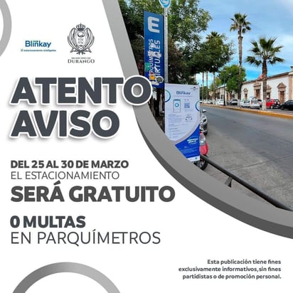 Durante este periodo vacacional, no se aplicarán multas por exceder el tiempo de estacionamiento, ni se requerirá ningún tipo de pago en las zonas reguladas por Blinkay.