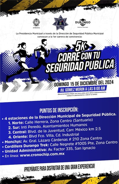 Anuncian la Carrera Atlética 5K 'Corre Con Tu Seguridad Pública' en Durango