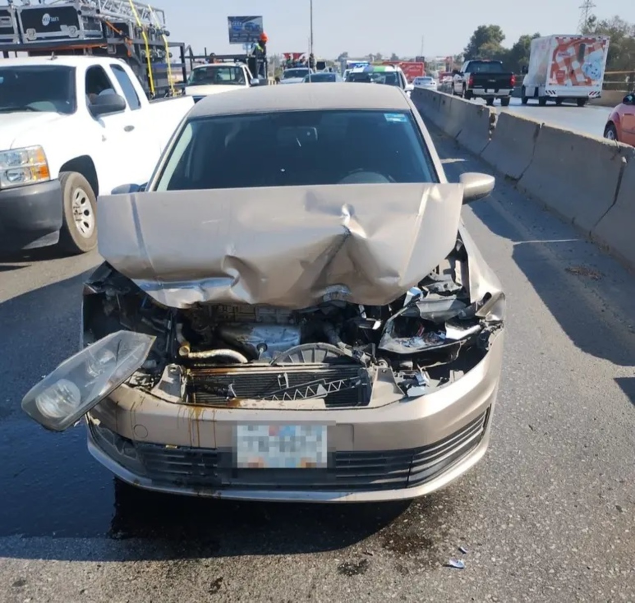 No se reportaron personas lesionadas de gravedad, aunque los daños materiales en el vehículo sedán fueron cuantiosos.