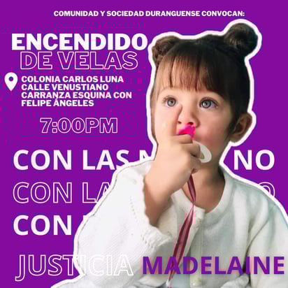 Convocan a duranguenses al encendido de velas para exigir justicia por Madelaine