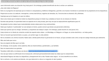 Esta nueva modalidad de extorsión se basa en la amenaza de difundir contenido íntimo obtenido de manera ilegal y emplean el nombre de Pegasus, software de vigilancia, para intimidar a los destinatarios y obligarlos a realizar pagos a cambio de no revelar supuestas fotos o grabaciones íntimas.