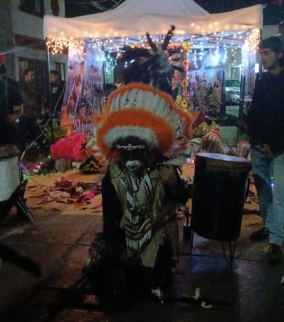 “Preparamos un altar a la virgencita y ahí ponemos nuestros penachos y las coronas de los demás danzantes”, comentó Jasiel Fernando Graciano Gallardo, uno de los Monarcas.