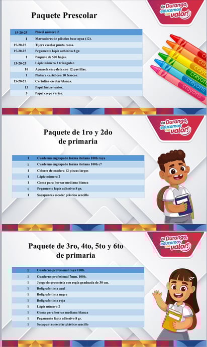 Durango: esto contienen los paquetes gratuitos de útiles escolares
