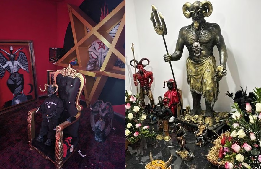 El altar hallado esta vez estaba conformado por una silla que hacía de trono para una efigie, detrás de ella, un pentáculo invertido, símbolo asociado al satanismo.