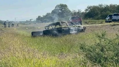 En el lugar se aseguró un vehículo tipo 'pick-up' totalmente calcinado, diversos cargadores y casquillos de diversos calibres, así como dos armas largas.