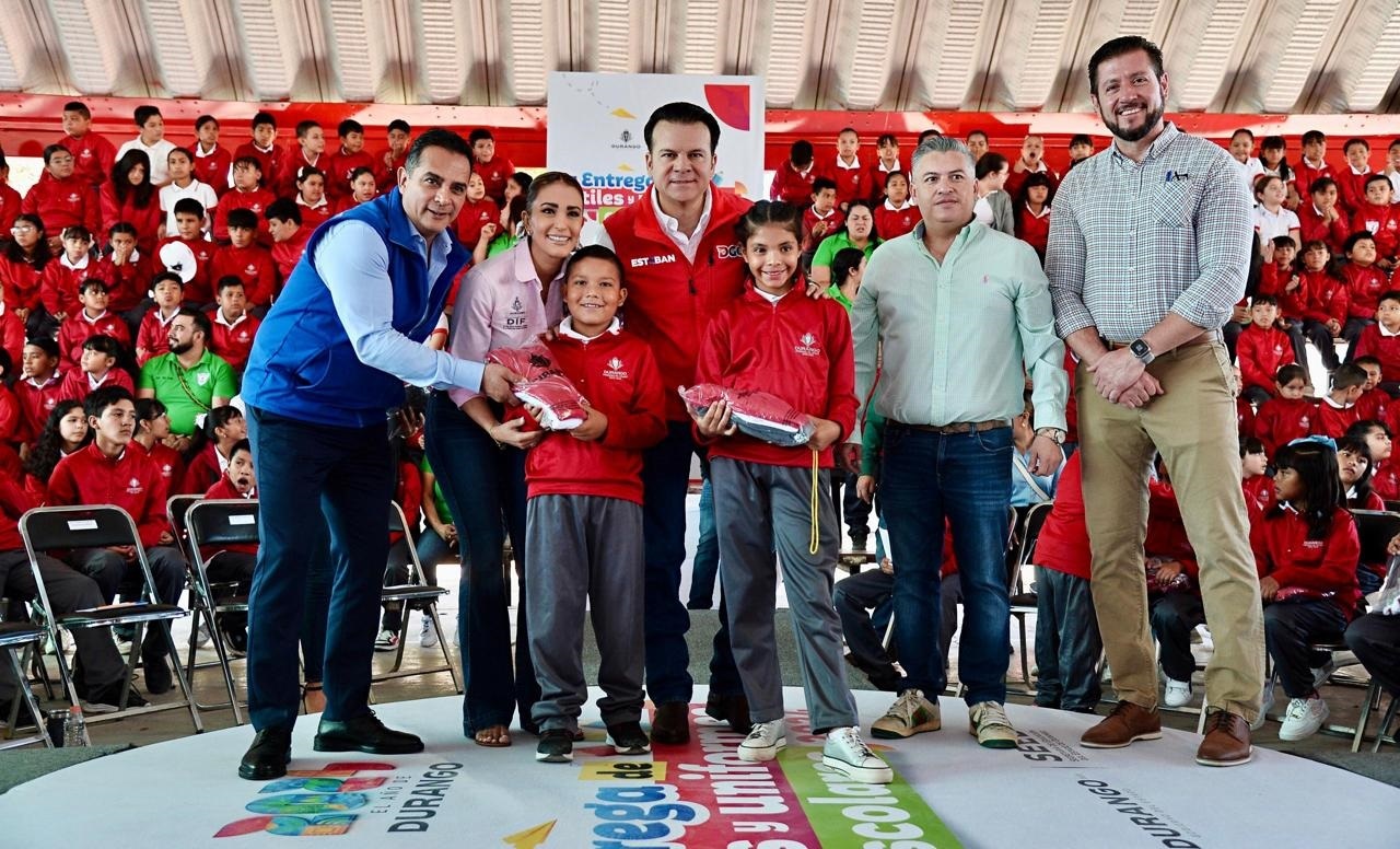 El Mandatario Estatal detalló que estas prendas deportivas, más que contribuir al ahorro en la economía familiar, representan igualdad y equidad en el salón de clase, lo cual ayuda a un mejor desarrollo para los niños, al tiempo de alentarlos a que sueñen en grande porque, con esfuerzo y dedicación, las metas se cumplen.