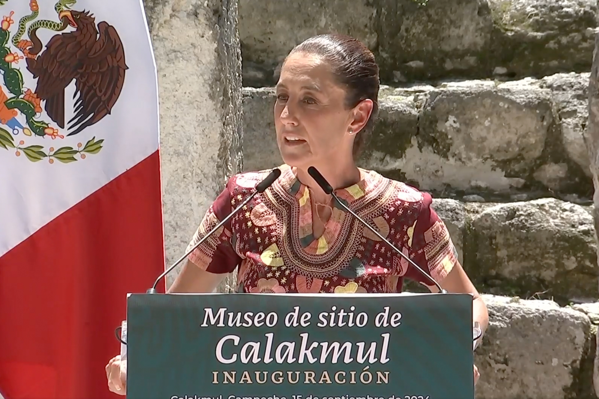 Durante la inauguración del Museo de Sitio de Calakmul, Sheinbaum indicó que este domingo también es simbólico, puesto que el presidente Andrés Manuel López Obrador se encuentra en el territorio maya a horas de dar su último Grito de Independencia.