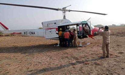 El helicóptero MI-17, con helibalde con capacidad para 2 mil 500 litros, ha realizado seis descargas de agua, con corte hasta las 10:00 horas. En estas acciones participan cinco elementos: cuatro de la Marina y uno de la Conafor.