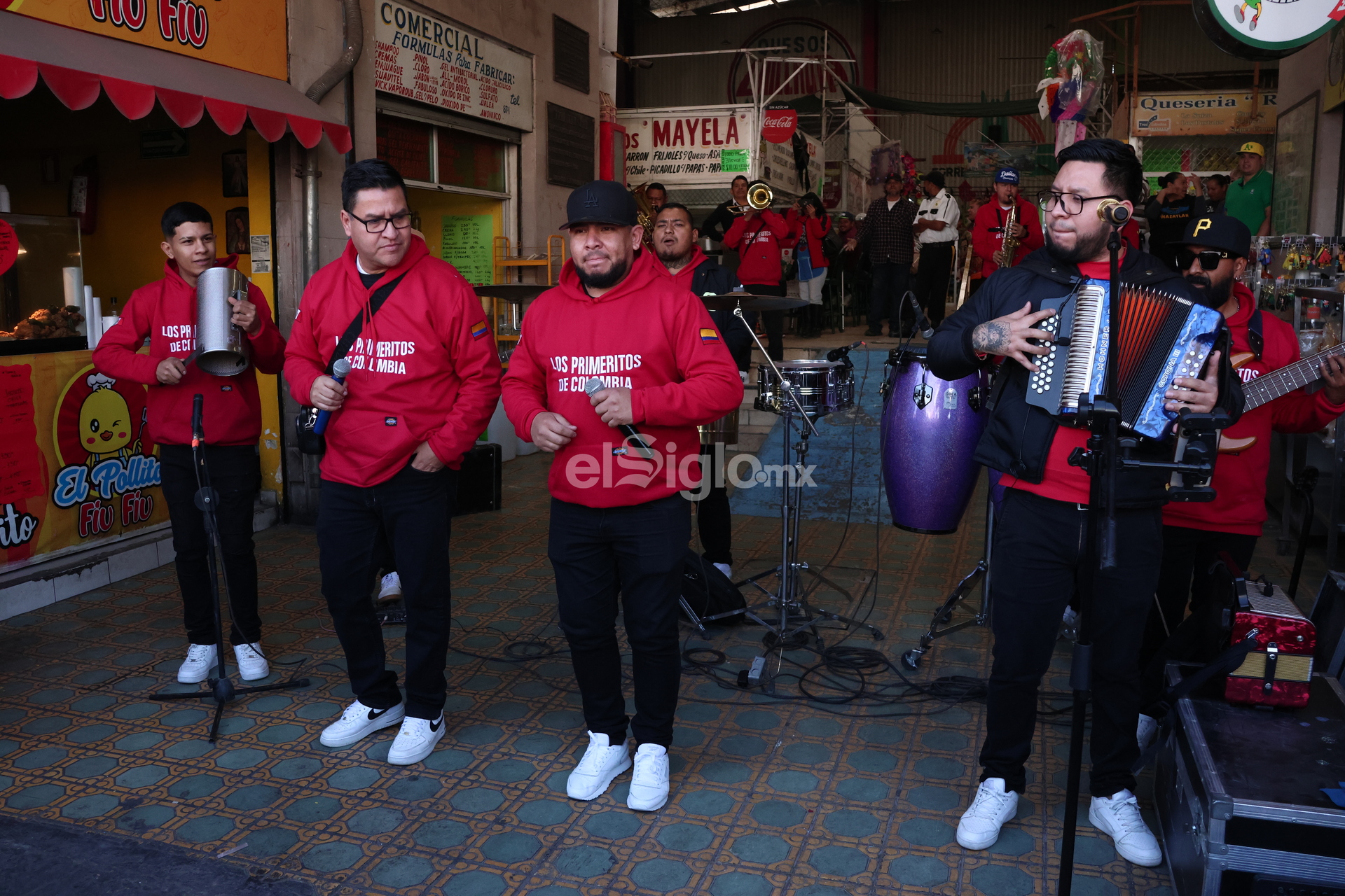 Durante sus números musicales, la gente que se congregó en el Mercado Juárez no dejó de bailar los temas de Los Primeritos y les echaron bastantes porras.