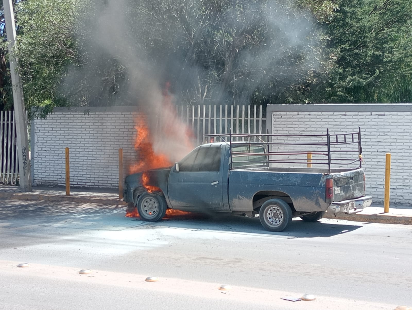 Los hechos ocurrieron en la calle Tlaxcala, casi esquina con Colima, en la colonia Valle del Guadiana, donde los elementos de bomberos sofocaron las llamas que consumían una camioneta marca Nissan, modelo 1990, que se encontraba estacionada.