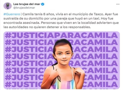 La tarde del miércoles 27 de marzo, la pequeña Camila de 8 años desapareció alrededor de las 3 de tarde en el barrio La Florida, en la cabecera municipal de Taxco, Guerrero. La madrugada de este jueves 28 de marzo, su cuerpo fue localizado en la carretera Taxco-Cuernavaca.