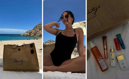 La actriz que empezó a forjar su fama en el programa infantil Alegrijes y Rebujos presumió un bolso tote en tejido natural, modelo que no puede faltar en la primavera y el verano. Además, compartió con sus seguidores los productos de belleza que usó en este viaje al mar.