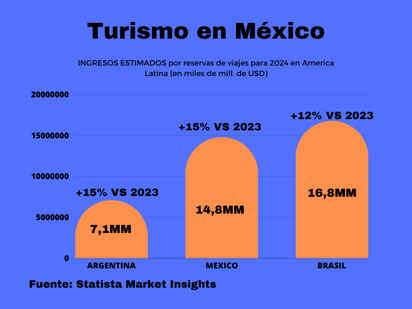 En América Latina, si lo comparamos con 2023 y teniendo en cuenta únicamente los ingresos estimados por reservas de viajes, se posiciona por encima de países como Brasil y Argentina.