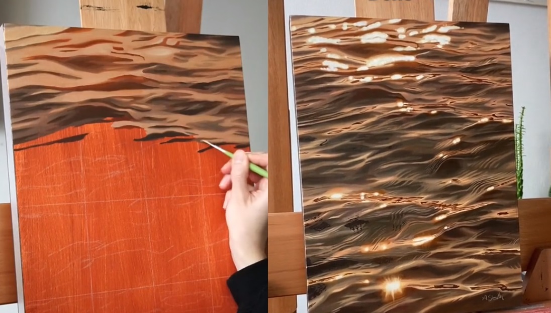 A través de la plataforma china, la usuaria @asimeth_art ha compartido con sus más de 8 mil seguidores, algunos videos donde muestra sus pinturas al óleo inspiradas en el agua, las cuales han sido todo un éxito en redes sociales.