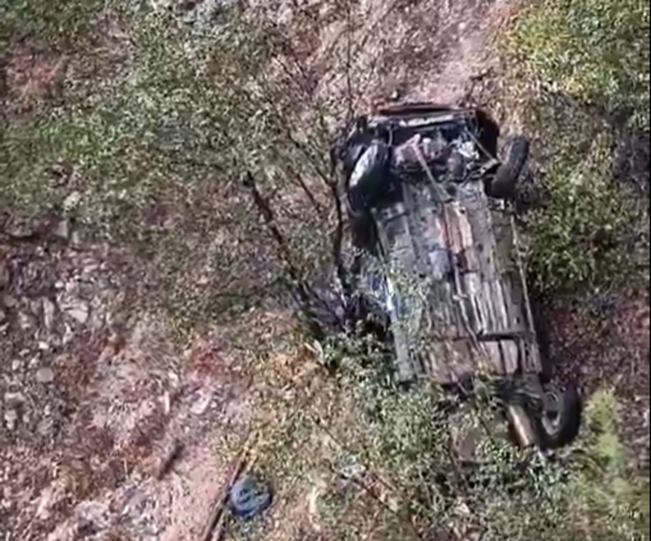El conductor del coche compacto perdió el control; se cree que por lo mojado del pavimento, lo que originó que cayeran a un barranco.