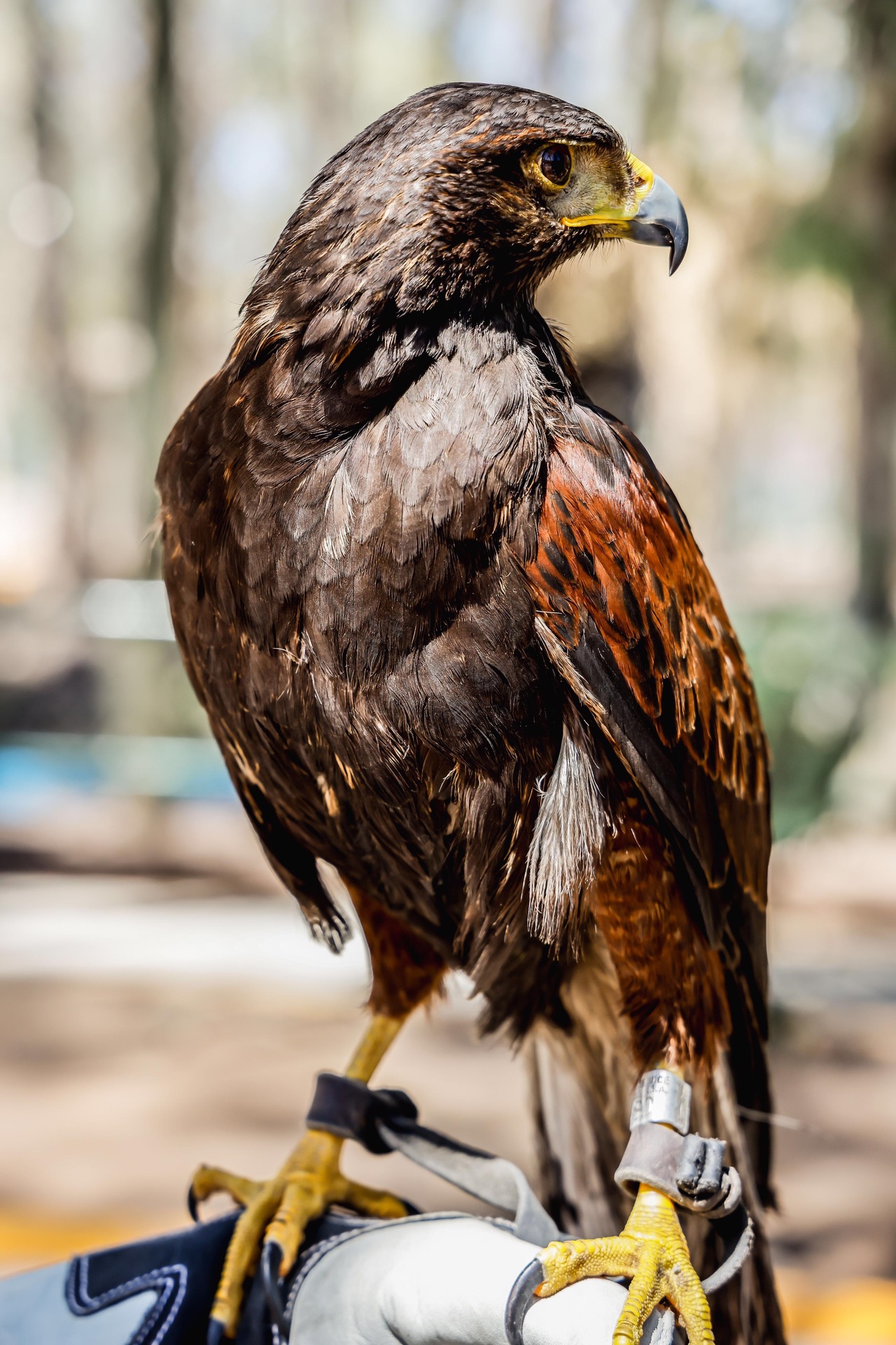 El nombre científico del águila de Harris es Parabuteo unicinctus y, por sus características, es una especie que es utilizada para despejar pistas de vuelo; por eso le llaman "lobo del aire". Viven hasta 20 años en resguardo.
