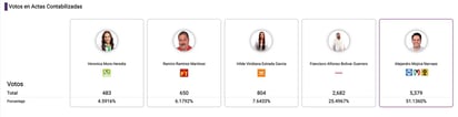 Según informan los reportes del Programa de Resultados Electorales Preliminares (PREP) estos son los líderes a las 10:30 pm: