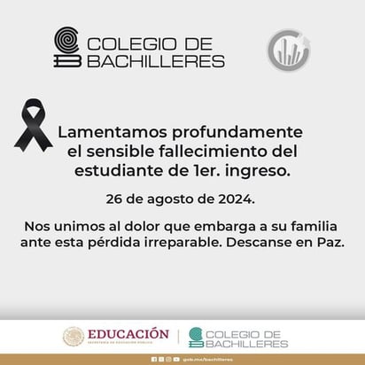 Por su parte, el Colegio de Bachilleres emitió un comunicado para expresar sus condolencias a familiares y amigos.